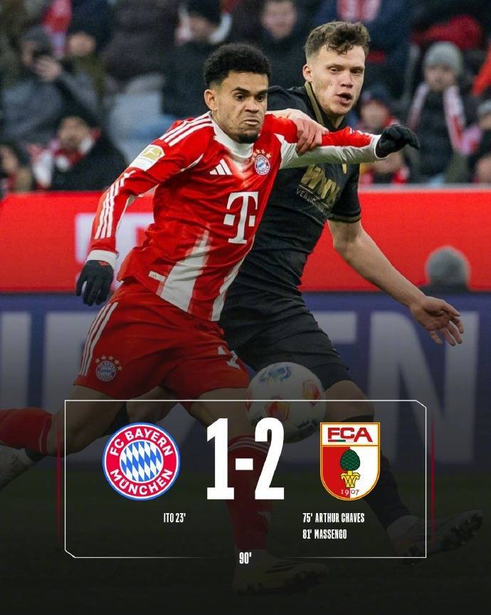 北京时间1月24日22:30,德甲联赛第19轮,拜仁在主场迎战奥格斯堡。上半场比赛,奥利塞助攻伊藤洋辉头球破门取得领先,半场结束拜仁1-0奥格斯堡;下半场,乌尔比希失误导致查维斯破门扳平,马森戈随后为奥格斯堡反超比分,最终拜仁1-2奥格斯堡,遭遇本赛季的联赛首败。